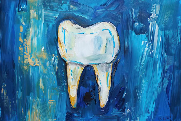 A four-tooth bridge in the upper right of my mouth broke the very same week the world shut down for COVID. Everything closed—schools, shops, the rhythms of daily life—and I, like so many others, stayed inside, afraid to go out, afraid to breathe near strangers, afraid of what might happen next.